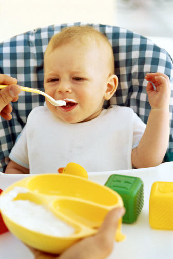 Ребенка, находящегося на искуственном вскармливании, приучают есть с ложки с 5 месячного возраста. Малыша, питающегося грудным молоком, начинают кормить с ложки с седьмого месяца жизни.