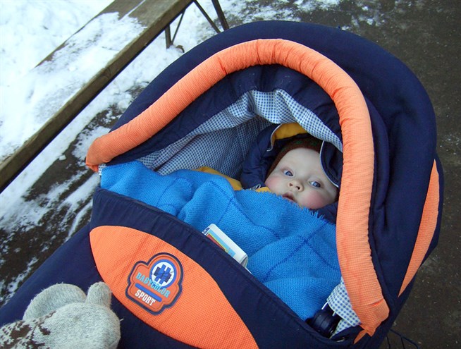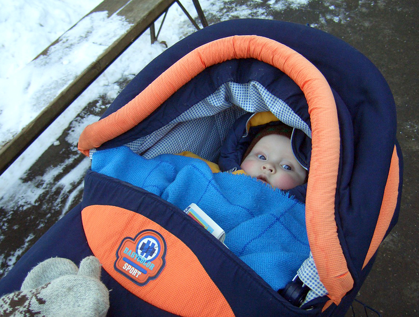 Свежий воздух очень полезен для малыша. Не стоит укутывать ребенка слишком тепло. Можно одеть его в теплый комбинезон, а сверху накрыть легким пледом.