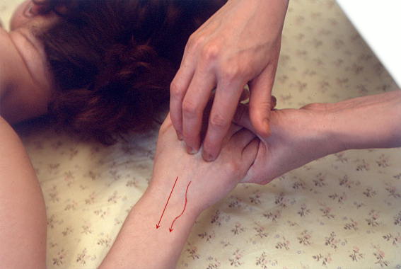 Растирание межпястных промежутков подушечками четырех пальцев