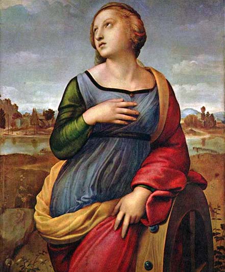 Рафаэль. Святая Екатерина Александрийская. 1507-1508 годы. Дерево. Лондонская национальная галерея.