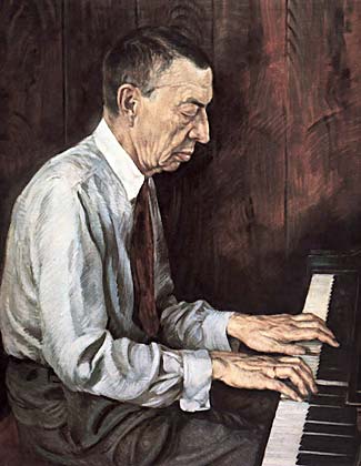 С.В. Рахманинов за роялем. Портрет работы Бориса Шаляпина.