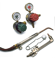 Резак для кислородной резки металлов. Вверху — редукторы.