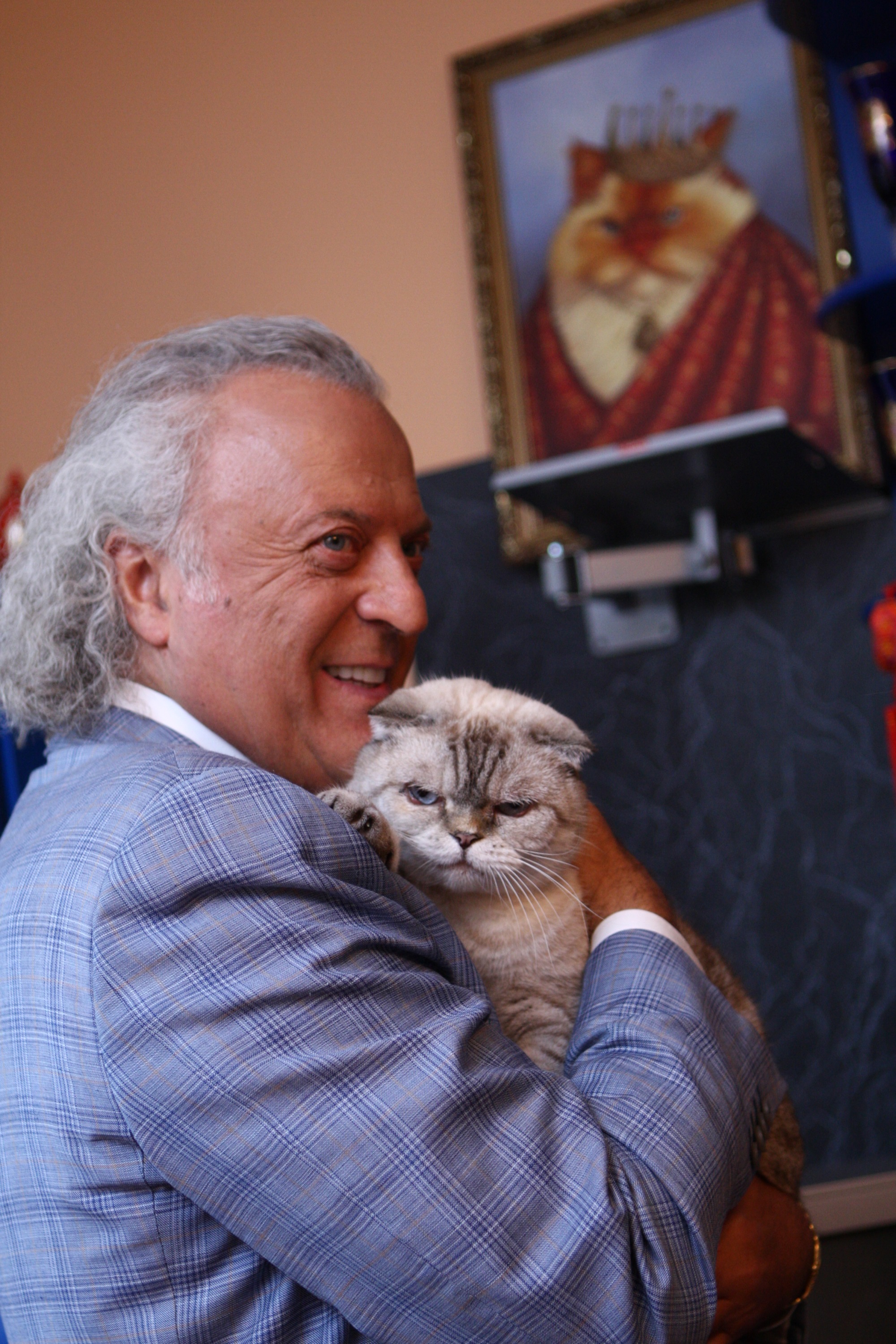 Резник Илья Рахмиэлевич со своей любимицей, шотладской вислоухой кошкой Лялей. 2009 год. Фото из архива KM.ru
