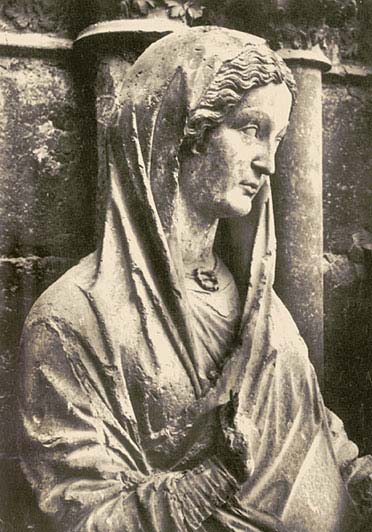 Мария. Фрагмент скульптурной группы «Встреча Марии и Елизаветы». Центральный портал Реймсского собора. 13 век. Франция.