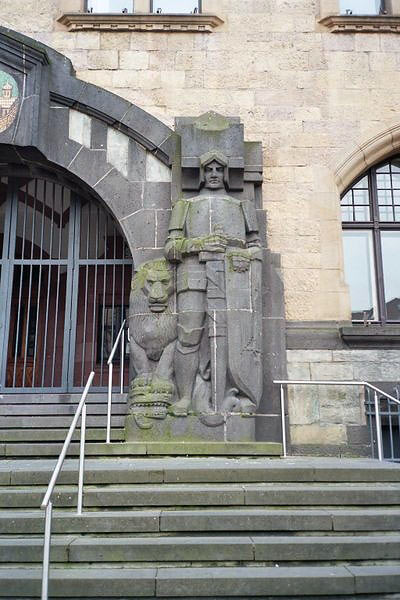 Реклингхаузен. Статуя рыцаря, украшающая вход в Ратушу. В народе известна как статуя Роланда. 1908.