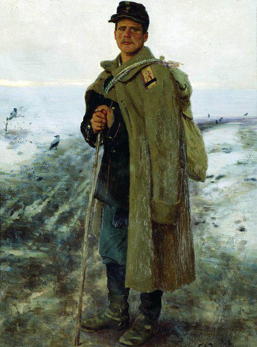 И.Е. Репин. На Родину. Герой минувшей войны. 1879 год. Холст, масло. Третьяковская галерея.