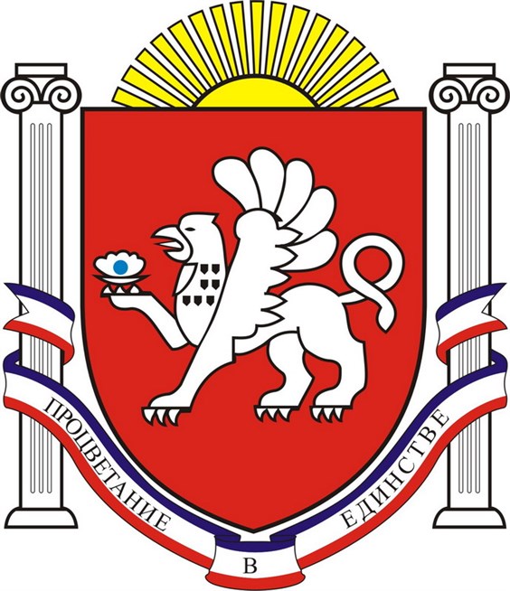 Герб Республики Крым представляет собой в червленом варяжском щите обращенного вправо серебряного грифона, держащего в правой лапе раскрытую серебряную раковину с голубой жемчужиной. Щит увенчан восходящим солнцем и окружен двумя белыми колоннами, соединенными сине-бело-красной лентой с девизом: «Процветание в единстве».