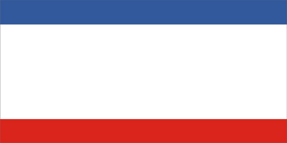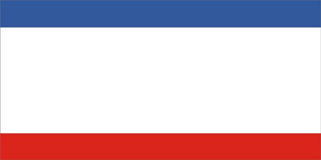 Флаг Республики Крым представляет собой полотнище, состоящее из трех горизонтально расположенных цветных полос: верхней - синего цвета, составляющей одну шестую ширины Флага; средней - белого цвета, составляющей четыре шестых ширины Флага; нижней - красного цвета, составляющей одну шестую ширины Флага. Соотношение сторон 1:2.