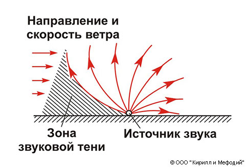 Рефракция звука (влияние ветра)