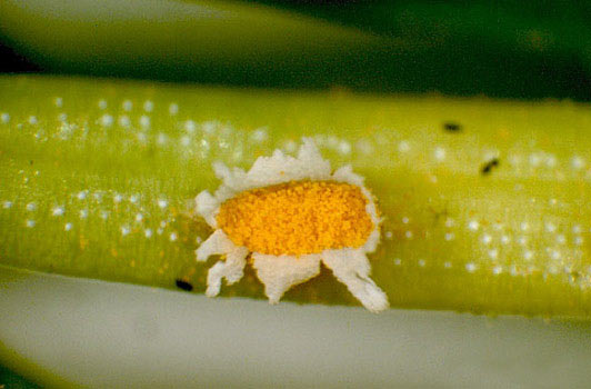 Хризомикса (Chrysomyxa), возбудитель болезни золотистая ржавчина хвои ели. Развивается на листьях багульника, затем переходит на ель. Пораженная отмирающая хвоя ярко-оранжевой окраски резко контрастирует с темно-зеленым фоном здоровой кроны.