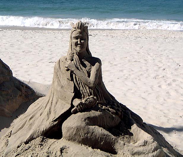 Рио-де-Жанейро. Скульптура из песка на пляже Копакабана.