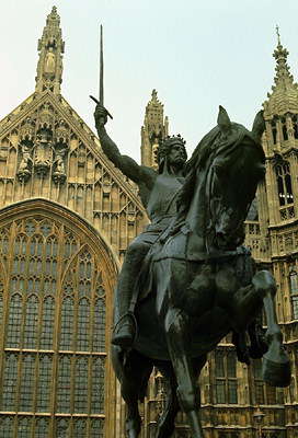 Памятник Ричарду Львиное Сердце перед зданием парламента Великобритании. Лондон.