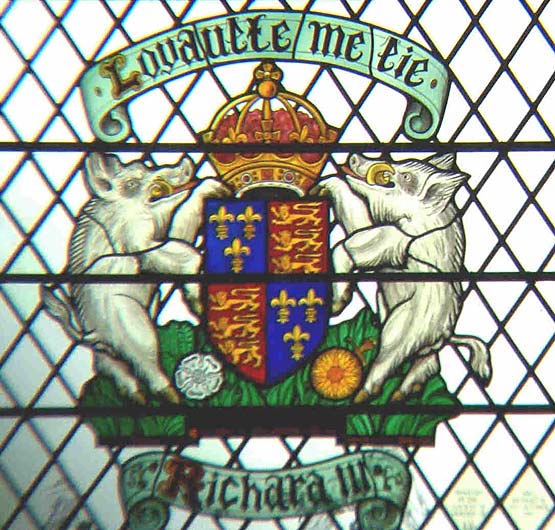 Личный герб Ричарда III изображен на витраже главного храма аббатства в Йорке. На знамени Ричарда был белый вепрь.