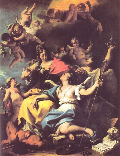 С. Риччи. Аллегория Франции в образе Миневры или Мудрости, попирающей Невежество и увенчивающей воинствующую Добродетель. 1718 год. Холст, масло. Лувр, Париж.
