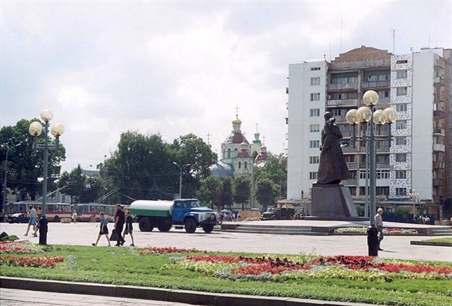 Ровно. Площадь Независимости, в центре памятник Т. Г. Шевченко. На заднем плане: Воскресенский кафедральный собор. 1895.