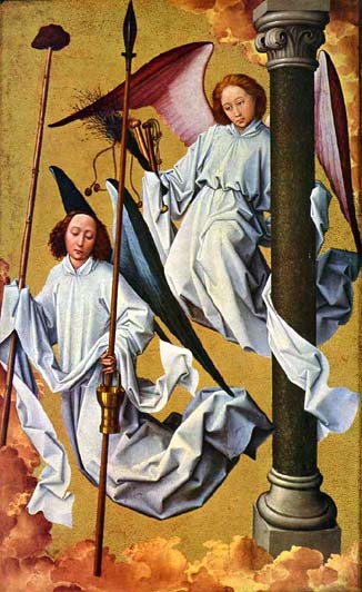 Рогир ван дер Вейден. Ангелы. Фрагмент росписи алтаря Страшного суда. Полиптих, правая створка (наверху). Около 1446-1448 года. Музей земли Северный Рейн-Вестфалия. Бонн.