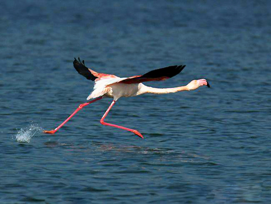Для того, чтобы взлететь, розовому фламинго необходимо сначала разбежаться.