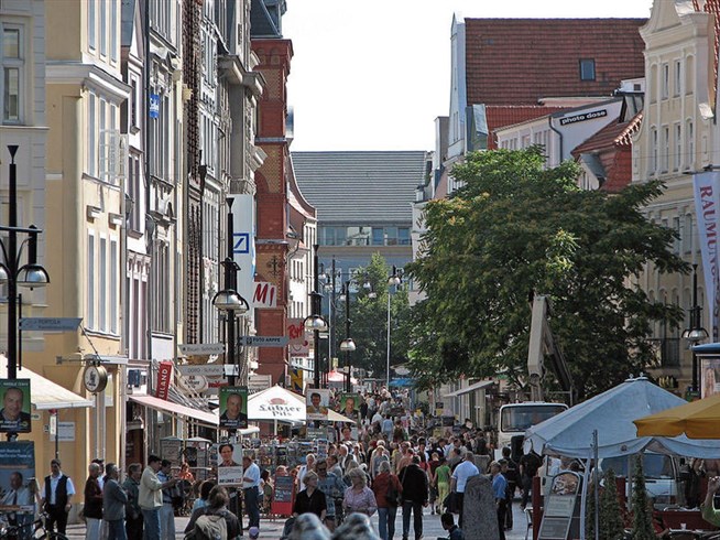 Росток. Панорама улицы Крепелинер-штрассе (Kroepeliner Strasse).