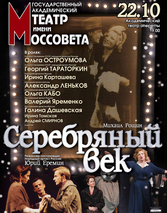 Афиша спектакля по пьесе М.М. Рощина «Серебряный век».