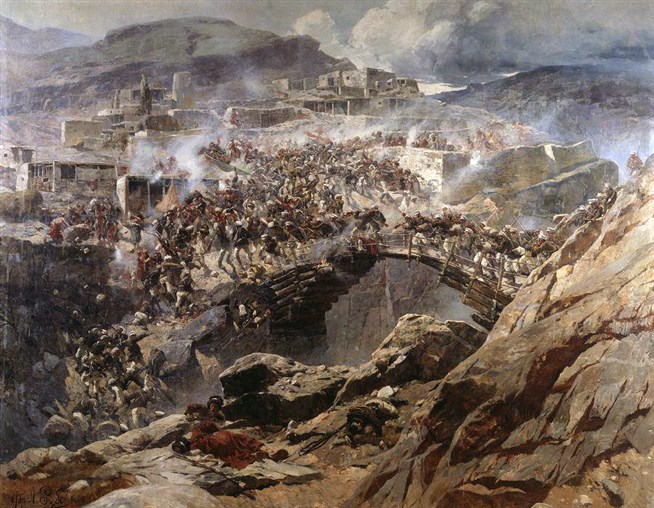 Ф.А. Рубо. Ахульго. 1888 год. Холст, масло. Дагестанский музей изобразительных искусств.