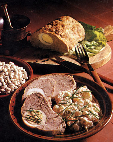 Рулет из рубленого мяса, фаршированный отварными яйцами