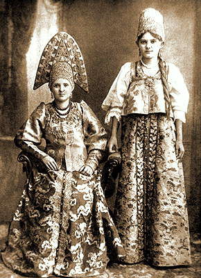Городецкие женщины в праздничных костюмах. Фотография.