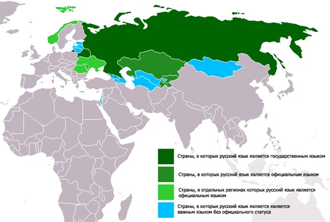 Карта распространения русского языка. 2011 год. Источник: wikimedia.org