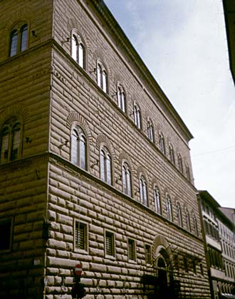 Флоренция. Палаццо Медичи-Рикарди. Фасад — из рустованного камня. Подобная отделка характерна для архитектуры итальянского Возрождения.
