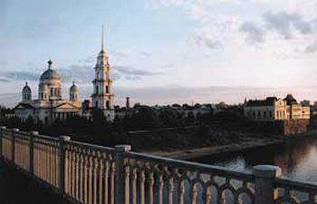 Рыбинск. Спасо-Преображенский кафедральный собор. Справа здание бывшей Хлебной биржи.