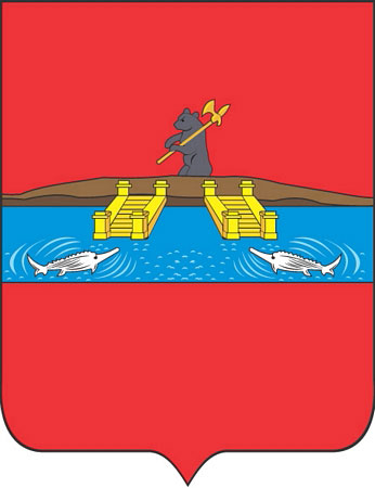 Герб Рыбинску был пожалован 31 августа 1778 года. Он был восстановлен 17 июля 2001 года. В червленном поле лазоревый пояс, над которым берег с золотой пристанью. Из-за берега выходит черный медведь, держащий в левой лапе на левом плече золотую секиру. У берега золотые мостки, ниже которых две серебряных стерляди.