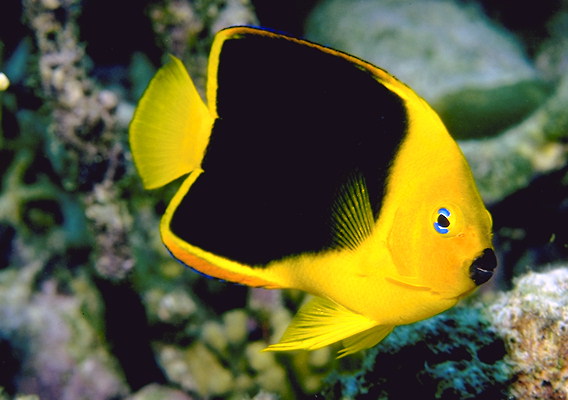 Трехцветный холакант, или красавица скал (Holacanthus tricolor).
