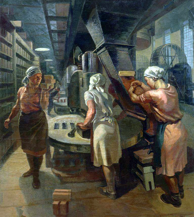 Серафима Владимировна Рянгина (1891-1955). Цех кирпича. Саткинский завод «Магнезит». Холст, масло. Челябинская картинная галерея.