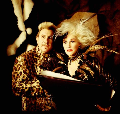 Гленн Клоуз в роли Круэллу де Виль, Жерар Депардье в роли Жана-Пьера Ле Пелля. Фильм «102 долматинца».
