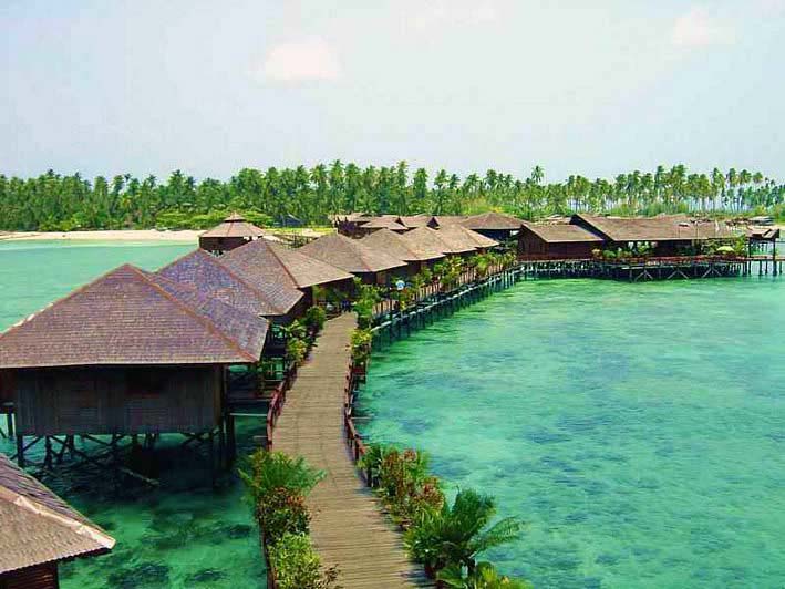 Домики на сваях на острове Сипадан. Штат Сабах. Малайзия.