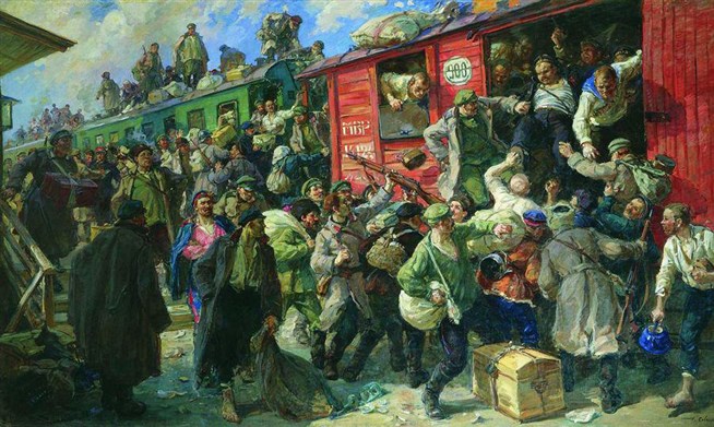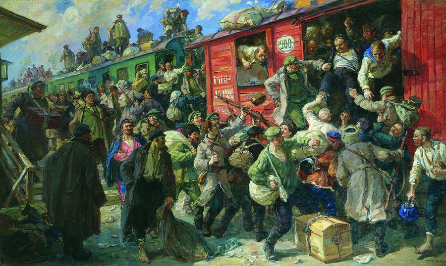 Г.К. Савицкий. Стихийная демобилизация царской армии в 1917 году. 1928 год. Холст, масло. Центральный музей вооруженных сил, Москва.