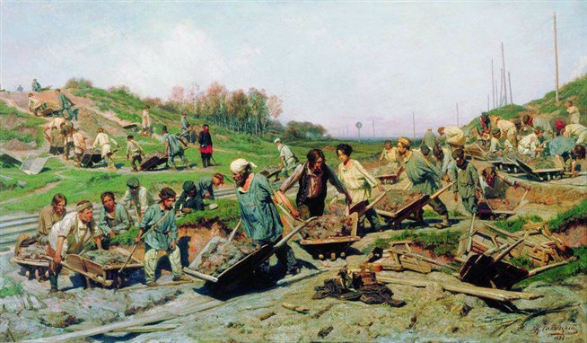 К.А. Савицкий. Ремонтные работы на железной дороге. 1874 год. Холст, масло. Третьяковская галерея.