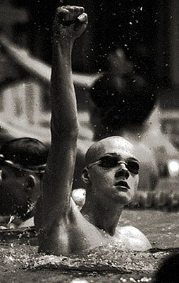 Е. Садовый на первенстве СНГ по плаванию. 1992 г.