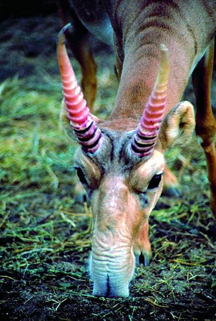Рога самца сайгака — грозное оружие. Фотография В. В. Климова.