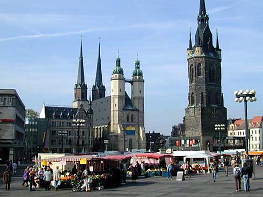 Саксония-Анхальт. Красная башня на Рыночной площади в Галле.