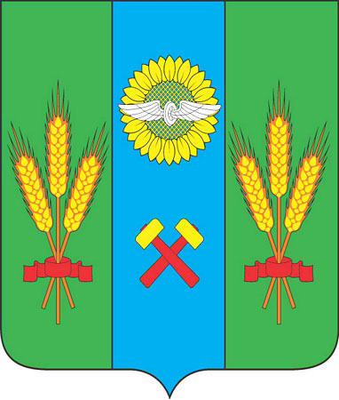 Герб Сальска и Сальского района был принят 28 августа 2002 года. На лазуревом столбе железнодорожная эмблема в дубовом венке и два скрещенных молота, на зеленых полях перевязанные красной лентой колоски.