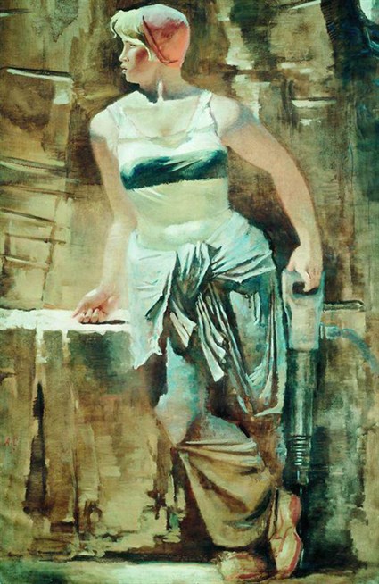 А.Н. Самохвалов. Метростроевка со сверлом. 1937 год. Холст, масло. Русский музей, Петербург.