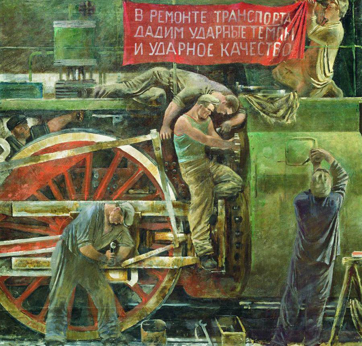 А.Н. Самохвалов. Ремонт паровоза. 1931 год. Холст, масло. Русский музей, Петербург.