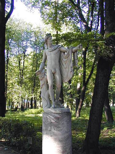 Санкт-Петербург. Скульптура Аполлона Бельведерского в Летнем саду, выполненная в конце 19 века.