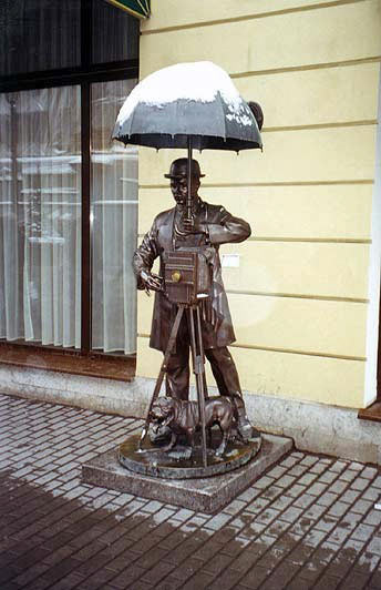 Скульптура «Фотограф» на Малой Садовой. Прообразом для ее создания послужил известный петербургский художник Карл Булла. Скульптор Борис Петров.