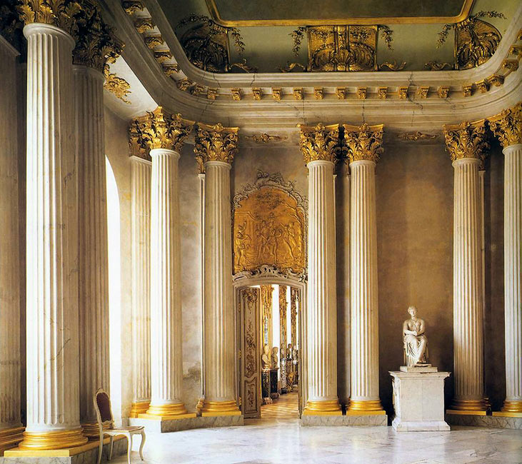 Один из входных залов. В Сан-Суси сочетаются легкость рококо и величие неоклассицизма.
