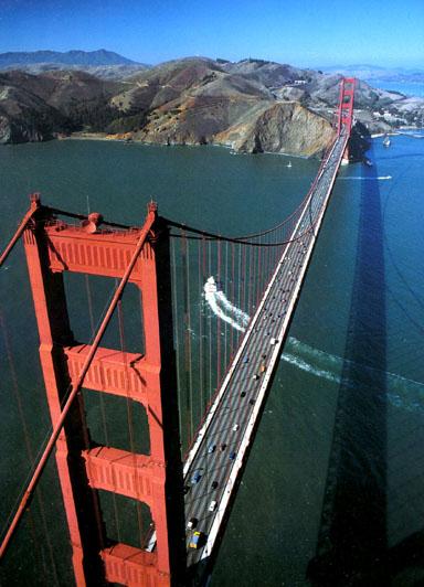 Сан-Франциско. Мост «Золотые Ворота». Строительство моста было завершено в 1937 г. Длина среднего пролета 1281 м.