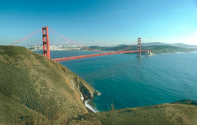 Мост «Золотые Ворота». Соединяет полуостров и Сан-Франциско с северной материковой частью Калифорнии. Строительство моста было завершено в 1937. Являясь одним из самых больших мостов США (длина среднего пролета 1281 м), Золотые ворота поражают легкостью конструкций. Со смотровой площадки моста открывается завораживающий вид на Сан-Франциско.
