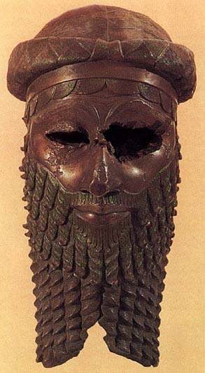 Медная скульптурная голова, обычно считается головой царя Саргона Древнего. Глаза выломаны грабителями. Из Ниневии. 23 в. до н.э. Национальный музей Ирака, Багдад.