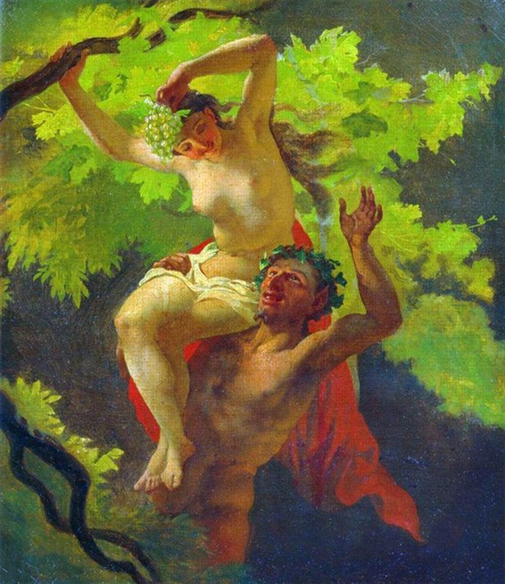 Михаил Иванович Скотти (1814-1861). Сатир и вакханка. Холст, масло. Третьяковская галерея.