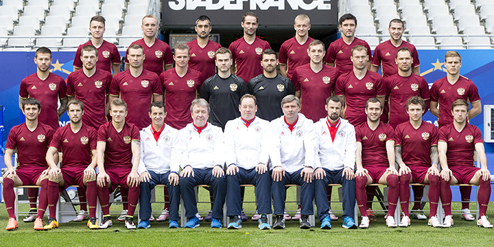 Сборная России по футболу на чемпионате Европы по футболу во Франции. Июнь 2016 года. Фото с официального сайта РФС России.